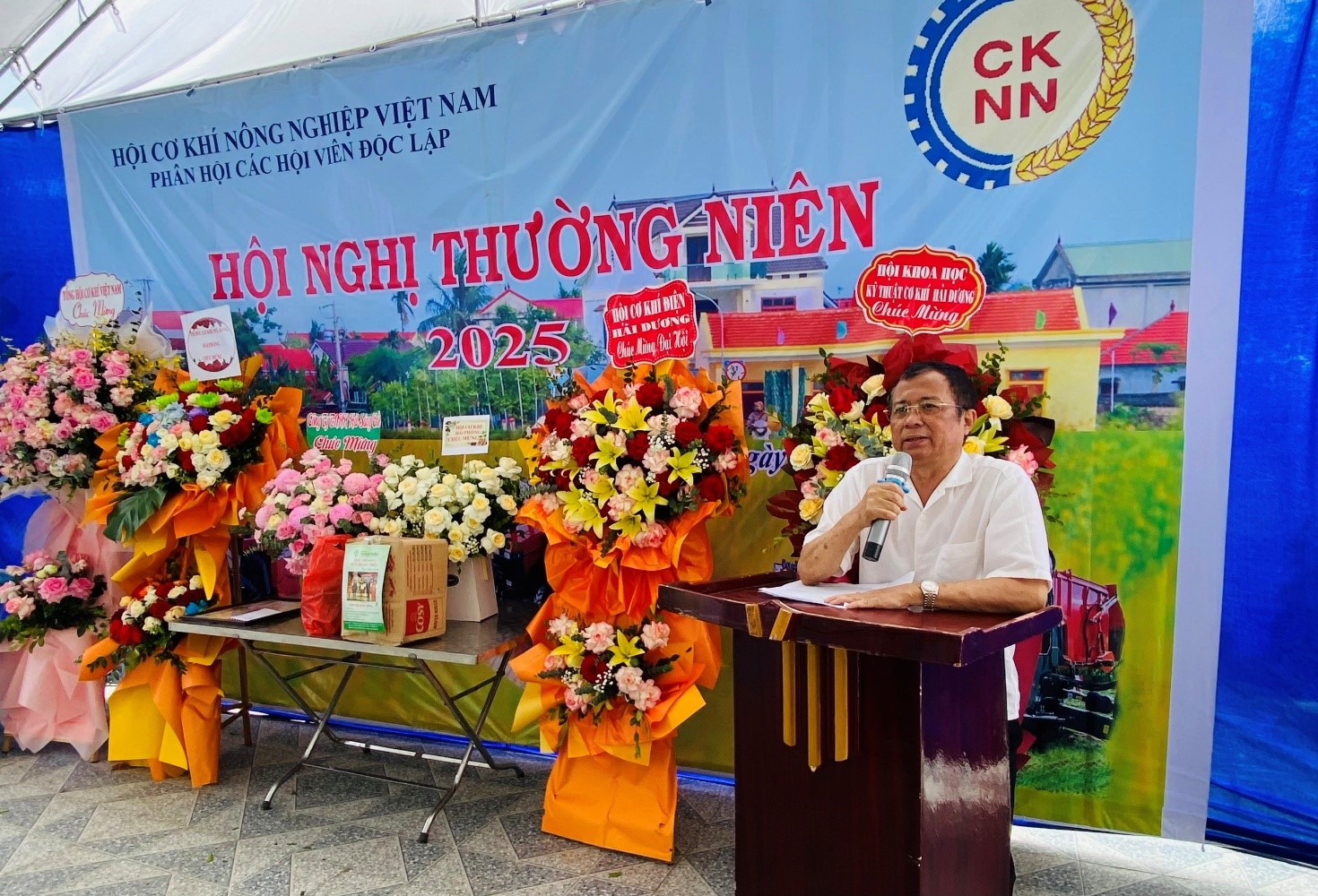 GS,TS. Nhà giáo Nhân dân Thiếu tướng Nguyễn Lạc Hồng - Phó Chủ tịch Tổng hội Cơ khí Việt Nam trong phát biểu chỉ đạo, cũng bày tỏ ấn tượng sâu sắc trước những sản phẩm sáng tạo, đặc biệt là các mô hình, thiết bị cơ khí nông nghiệp do hội viên phát triển. Ông cho rằng những thành quả này không chỉ thiết thực với ngành nông nghiệp mà còn góp phần thúc đẩy nền công nghiệp cơ khí quốc gia. Ông kêu gọi các cấp, ngành tiếp tục tạo điều kiện thuận lợi hơn nữa cho các chi hội, hội viên phát triển cả về con người, cơ sở vật chất và nguồn lực tài chính – thực hiện tốt Nghị quyết 57 của Bộ Chính trị về đột phá phát triển khoa học, công nghệ, đổi mới sáng tạo và chuyển đổi số quốc gia.