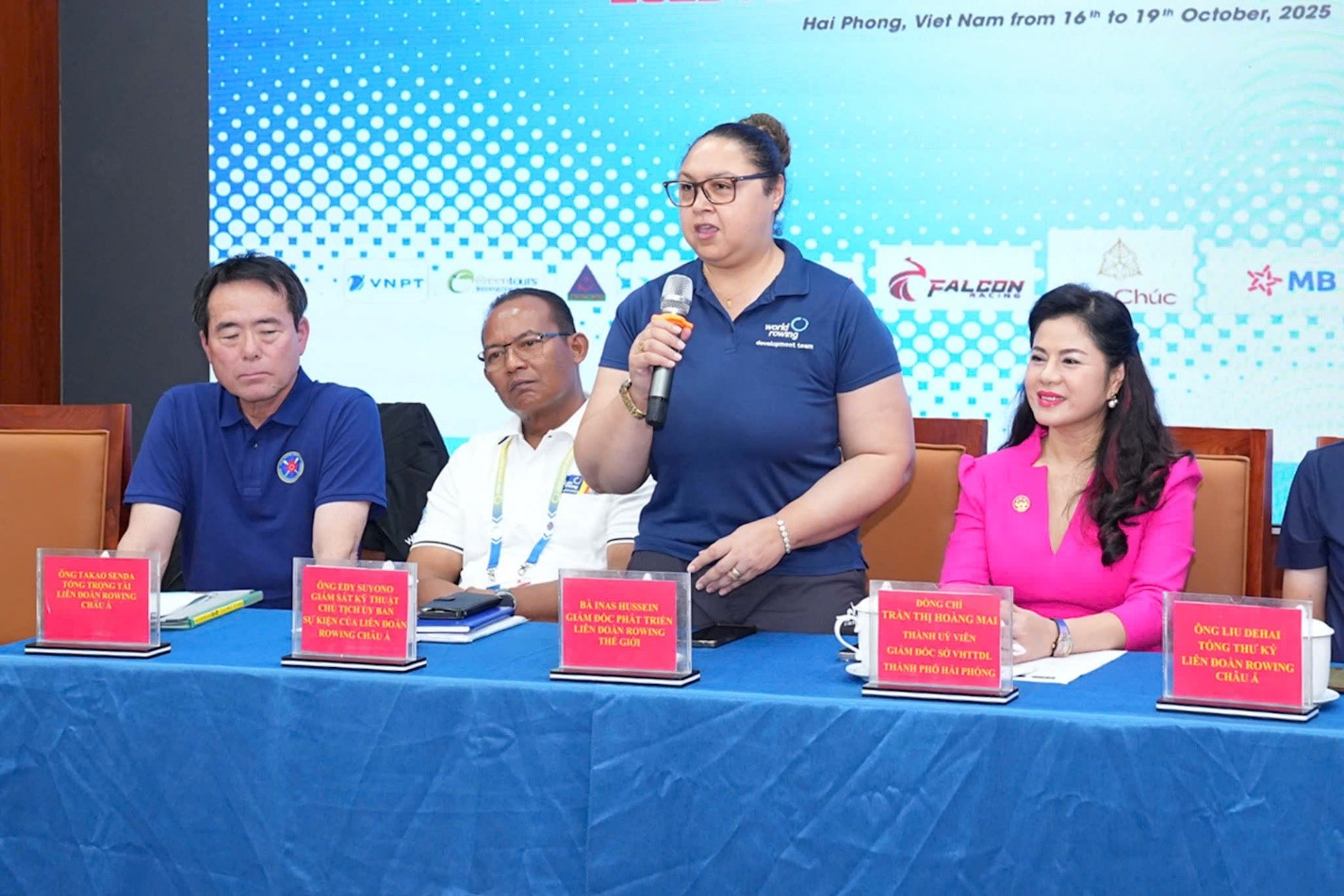 Phát biểu tại cuộc Họp báo, Giám đốc Sở Văn hóa, Thể thao và Du lịch Trần Thị Hoàng Mai đề dẫn: việc đăng cai tổ chức Giải Đua thuyền Rowing Vô địch Châu Á năm 2025 tại thành phố Hải Phòng không chỉ là cơ hội thuận lợi để các vận động viên Đội tuyển Đua thuyền Việt Nam và vận động viên Hải Phòng được cọ xát, nâng cao thành tích, chuẩn bị lực lượng tham dự SEA Games 33 tổ chức tại Thái Lan vào tháng 12/2025, Đại hội Thể thao Châu Á (ASIAD 20) năm 2026 tại Nhật Bản và Vòng loại Olympic 2028 tại Los Angeles (Hoa Kỳ); mà còn là dịp để Việt Nam khẳng định vai trò chủ động, tích cực và trách nhiệm trong hội nhập quốc tế, góp phần phát triển phong trào Đua thuyền Rowing Châu Á.