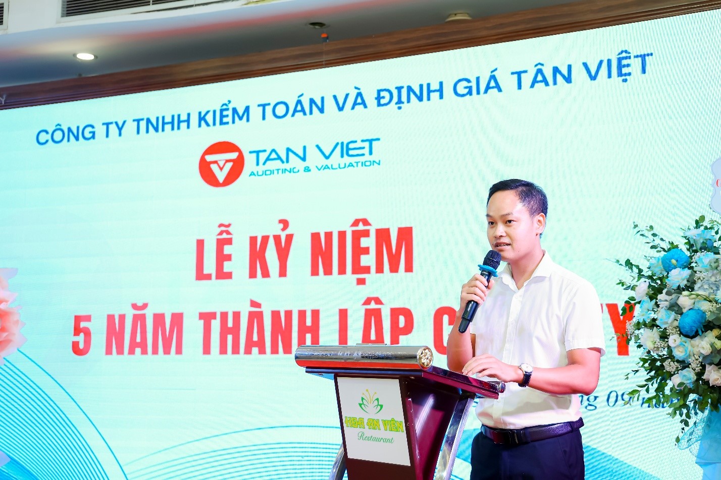 Phát biểu khai mạc buổi lễ, Giám đốc Trần Xuân Toàn bày tỏ niềm tri ân sâu sắc tới toàn thể cán bộ nhân viên và đối tác đã góp phần làm nên thành công của Tân Việt trong suốt 5 năm qua. Ông nhấn mạnh, chặng đường vừa qua tuy không dài nhưng đủ để khẳng định bản lĩnh, tinh thần đoàn kết và nỗ lực không ngừng nghỉ của tập thể công ty. Tân Việt đã vượt qua nhiều khó khăn, thách thức để khẳng định thương hiệu và uy tín trên thị trường dịch vụ kiểm toán, định giá.