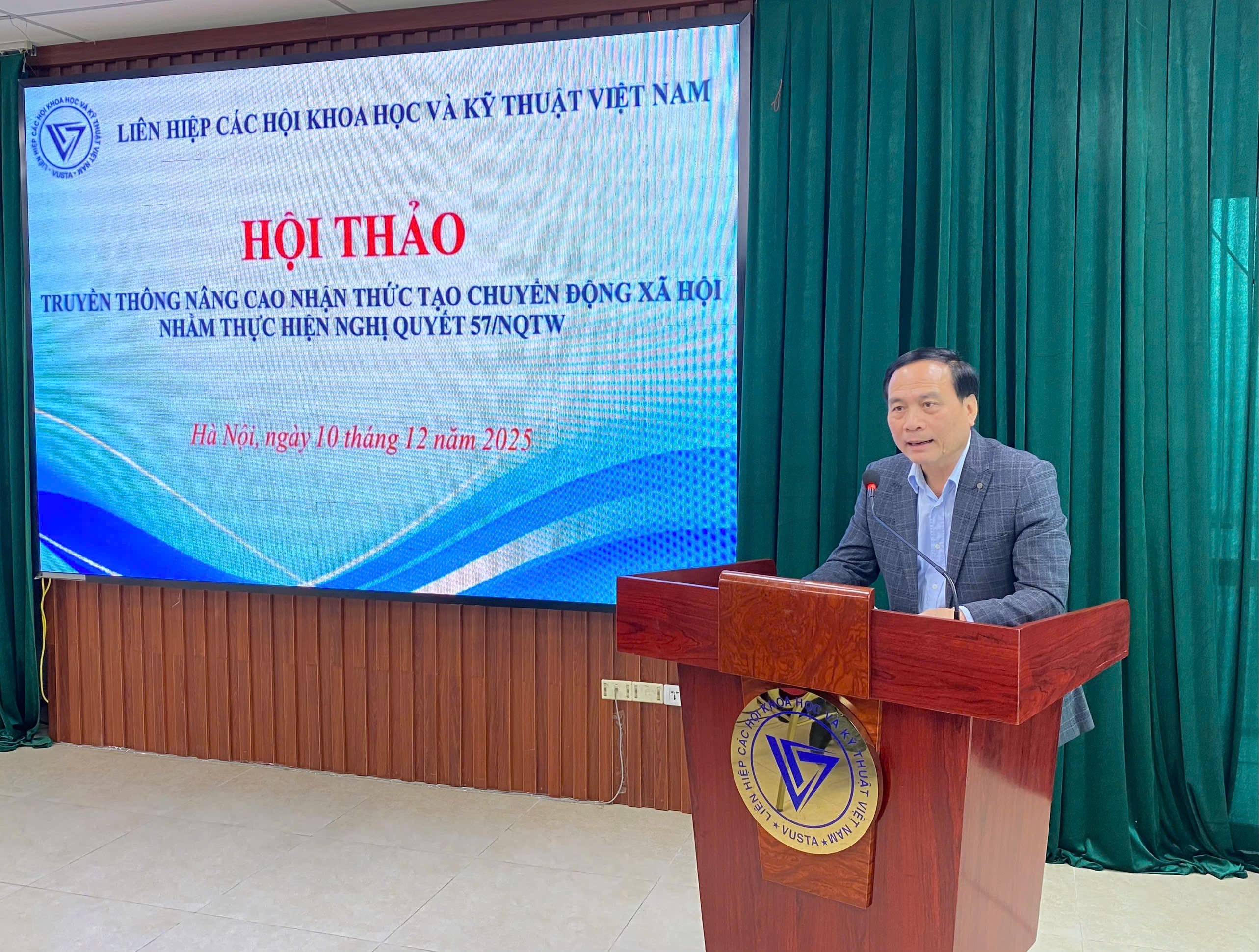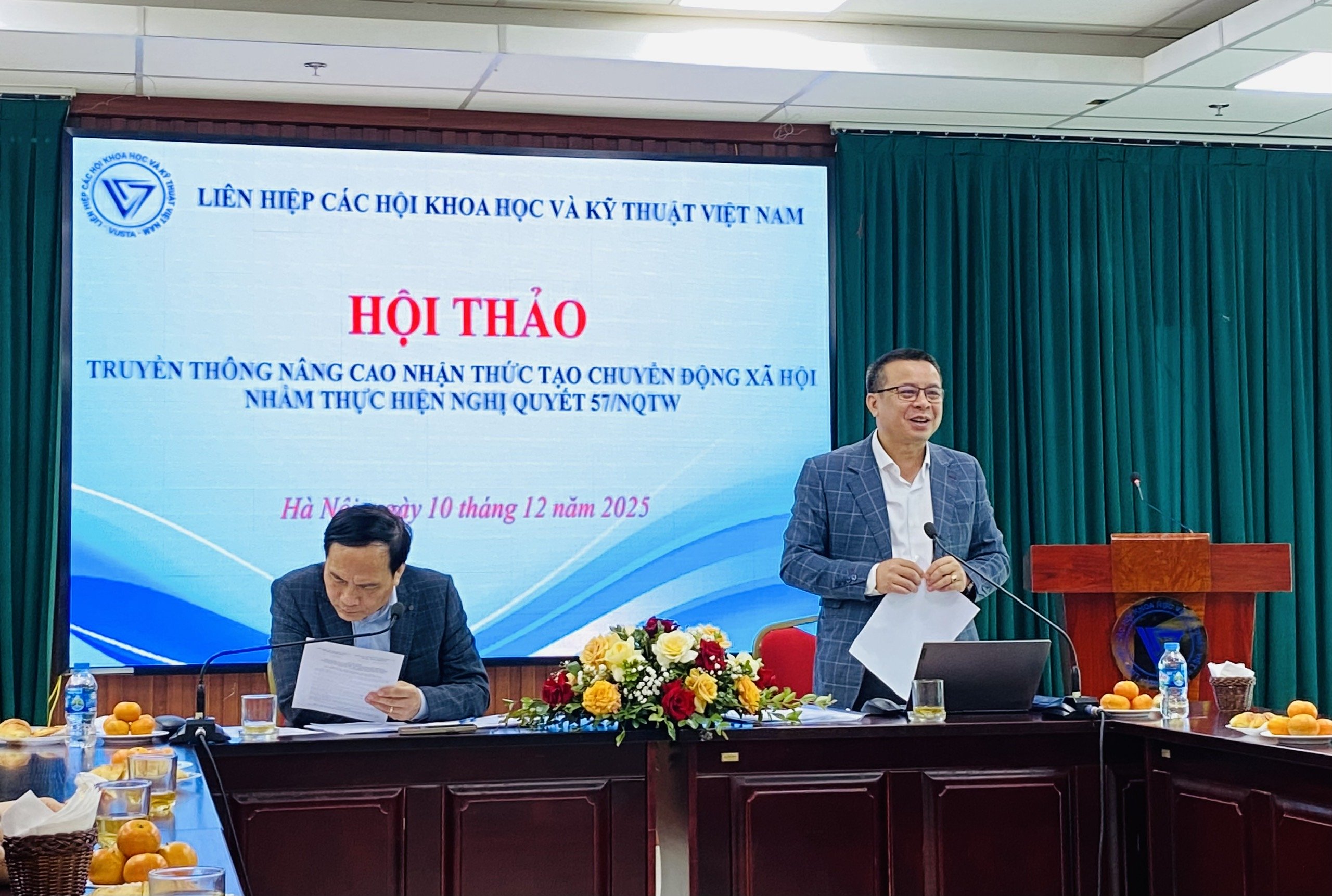 Liên hiệp Hội Việt Nam đã ban hành chương trình hành động cụ thể hóa Nghị quyết 57, xác định mục tiêu, yêu cầu và bốn nhóm nhiệm vụ trọng tâm cho đến năm 2030. Hội thảo lần này được xem là diễn đàn quan trọng để hệ thống báo chí, các nhà khoa học, các chuyên gia truyền thông cùng trao đổi, đề xuất giải pháp truyền tải hiệu quả tinh thần Nghị quyết vào đời sống xã hội, trước hết là làm thay đổi nhận thức về khoa học – công nghệ, đổi mới sáng tạo và chuyển đổi số.