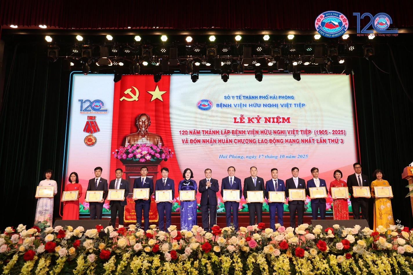 Tại Lễ kỷ niệm, Bệnh viện vinh dự được Chủ tịch nước tặng Huân chương lao động hạng Nhất do đã có thành tích xuất sắc trong quá trình công tác góp phần vào sự nghiệp xây dựng chủ nghĩa xã hội và bảo vệ tổ quốc; Chủ tịch UBND thành phố Hải Phòng tặng Bức trướng với nội dung “120 năm hành trình vì sức khỏe nhân dân”. 11 tập thể và 15 cá nhân thuộc Bệnh viện được nhận Bằng khen của Chủ tịch UBND thành phố do đã có thành tích đóng góp, xây dựng và phát triển Bệnh viện Hữu nghị Việt Tiệp.