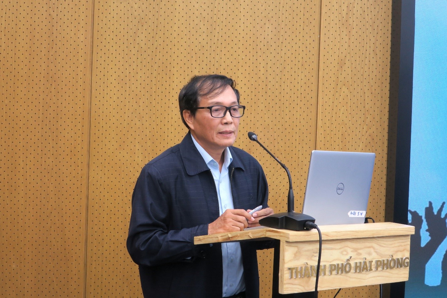 TS. Phạm Hữu Thư, Phó Chủ tịch Liên hiệp các Hội Khoa học và Kỹ thuật Hải Phòng phát biểu.